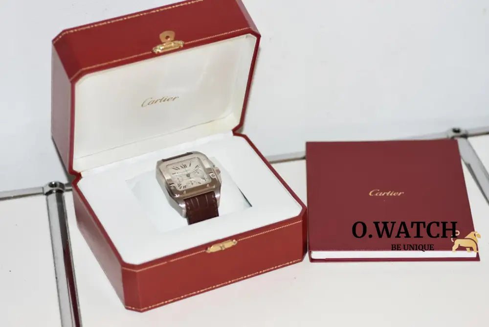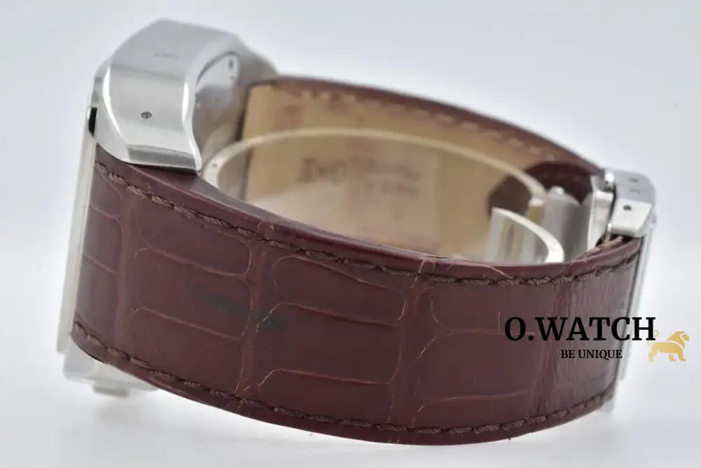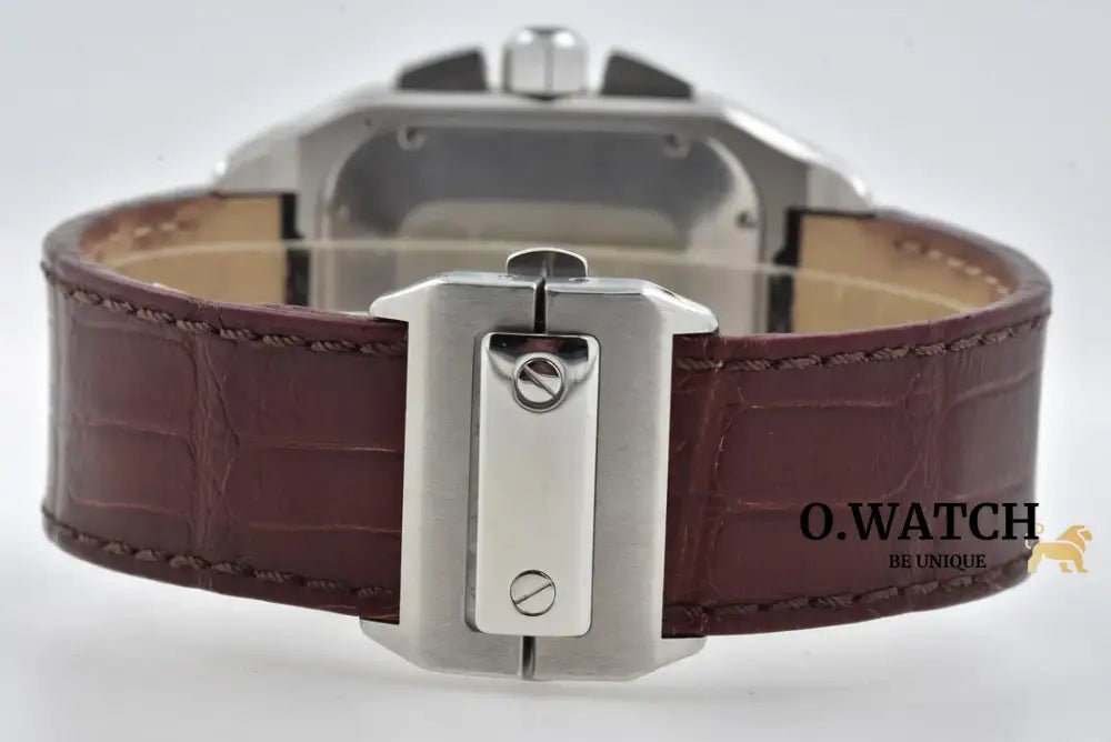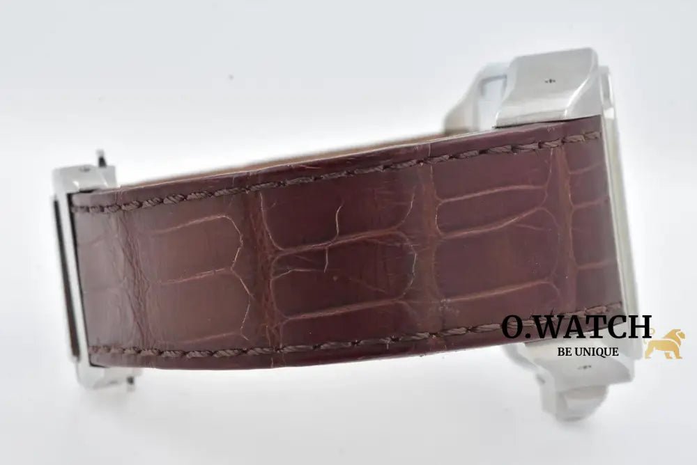 Boîtier : acier inoxydable, diamètre env. 41×55 mm, hauteur env. 14 mm, verre saphir Bracelet : bracelet en cuir Cartier avec boucle déployante Mouvement : Cartier automatique, aiguille des heures, des minutes et des secondes, chronographe, date Cadran : blanc