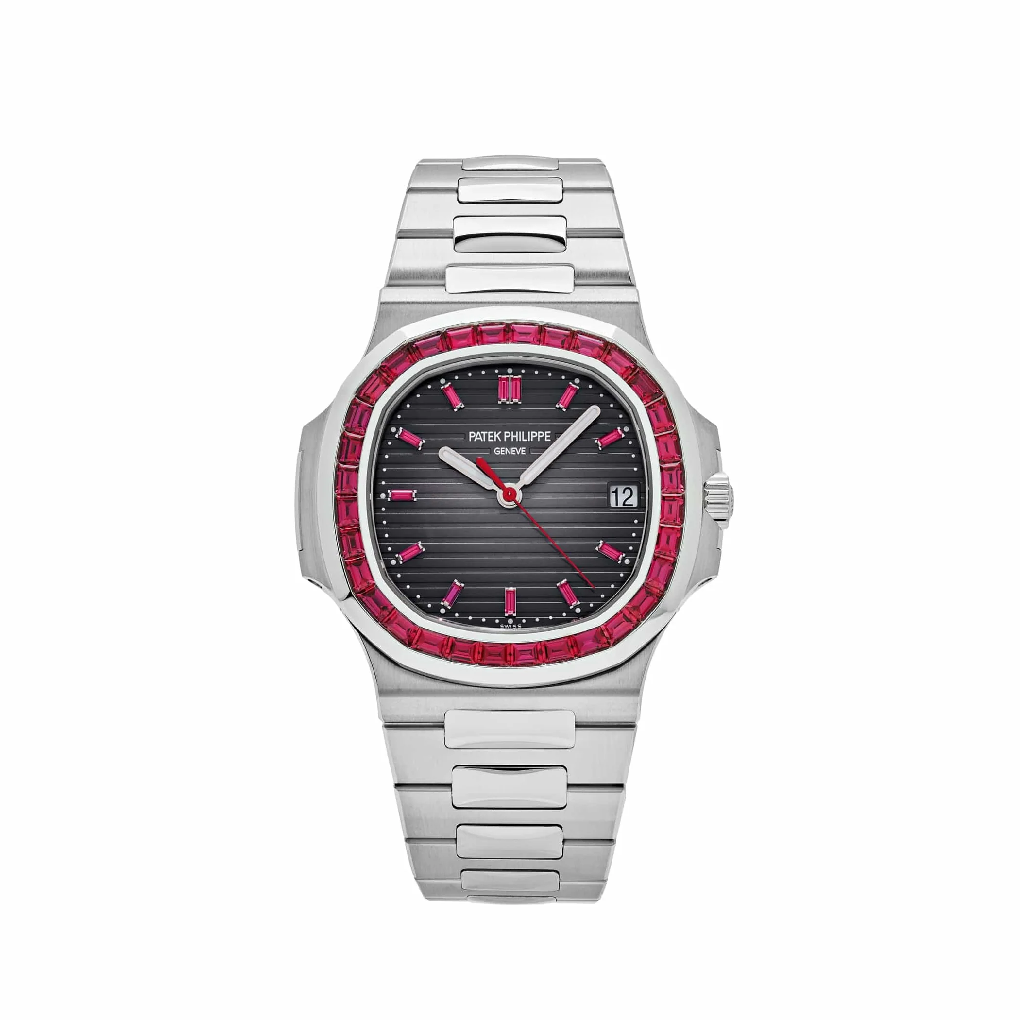 Patek phillipe Platinum Grey Dial Ruby Bezel