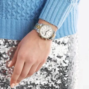 La montre Michael Kors MK6474 incarne l’élégance au féminin. Son bracelet en acier inoxydable bicolore, argenté et doré, offre un contraste raffiné qui sublime le poignet. Le cadran est enrichi de trois compteurs chronographes ainsi qu’un guichet date. Un modèle à la fois luxueux et fonctionnel, parfait pour accompagner vos journées avec style et brillance.