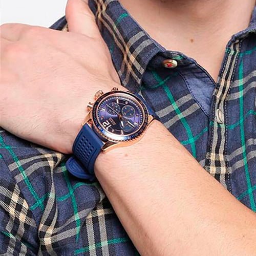 Montre Guess Homme W0971G3 Montre Guess Homme W0971G3 , Les montres Guess combinent la science et les mouvements des horlogers Suisse avec des lignes soignées et modernes. Les montres de marque Guess arborent chacune un style différent et original. Elles sont toutes créées selon les tendances actuelles, Montre Guess Homme W0971G3 Montre de vos rêves dans les nombreuses collections de Guess. Guess c’est aussi une marque de montre incontournable pour tous ceux qui aiment le chic et le luxe. Aujourd&rsquo, hui, Luxeldo.com a décidé de revenir sur cette marque fashion à l&rsquo, occasion de sa vente privée au Maroc . Découvrez No collections Montre homme , Montre femme LES GRANDES LIGNES DU DESIGN DE GUESS Les montres Guess ont un style à la fois provocateur et clinquant dans lequel tous peuvent se reconnaître. Pour homme, comme pour femme, ces montres sont un véritable symbole d’élégance et de classe. Si certaines montres jouent à fond la carte du glamour avec une surenchère de détails chic (strass, brillant, nacre, logo apparent), d’autres s’adaptent plus facilement aux tenues de tous les jours grâce à leur sobriété. Homme ou femme, les montres Guess proposent une offre étendue de modèles qui plairont à tous. DÉTAILS: Mouvement: Quartz Couleur du bracelet: Bleu Etanchéité: 100 M Couleur du cadran: Noir Matière du bracelet: Caoutchouc Diamètre du boîtier: 44mm Epaisseur du boîtier: 12mm Genre: Homme Affichage: Analogique Style: Design Fermeture du bracelet: Boucle ardillon Largeur du bracelet: 22mm Matière du boîtier: Acier inoxydable Type de verre: Minéral Forme du boîtier: Ronde Couleur du boîtier: Or rose et bleu