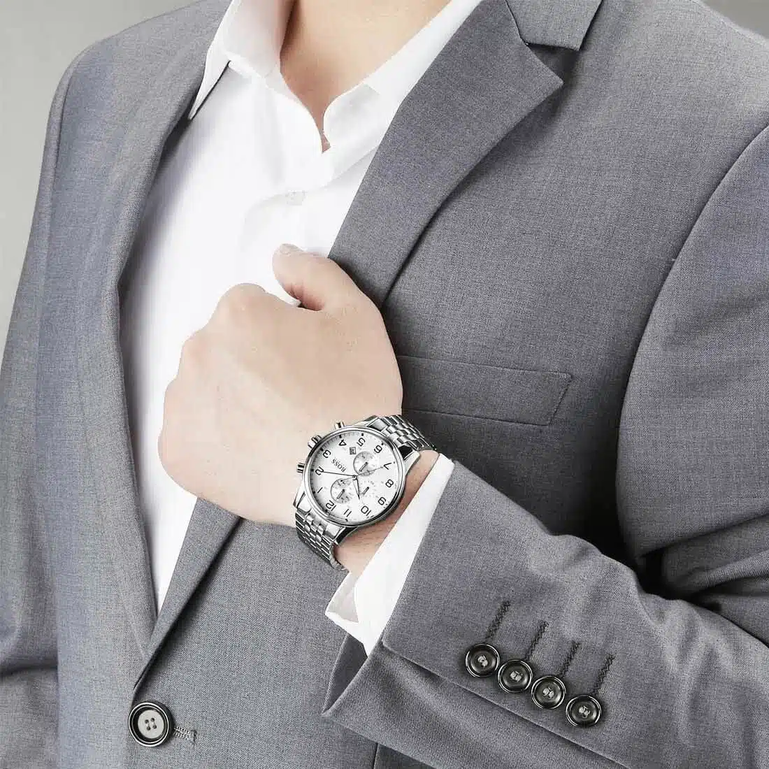 La Hugo Boss 1512445 séduit par son cadran blanc immaculé aux chiffres arabes noirs et ses sous-compteurs chronographe parfaitement équilibrés. Son boîtier et bracelet en acier inoxydable poli reflètent une élégance classique indémodable, tandis que sa lisibilité parfaite en fait l’allié idéal du quotidien professionnel. Une montre raffinée qui incarne la sophistication masculine avec une présence discrète mais remarquable.