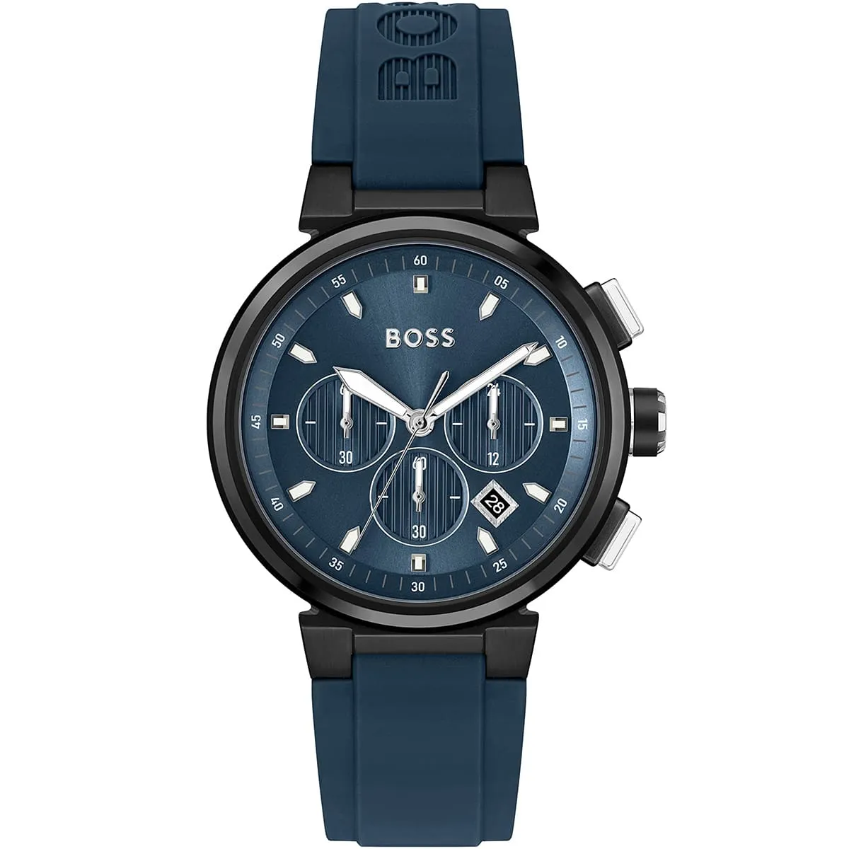 La Hugo Boss 1513998 fascine par son cadran bleu océan profond sublimé par des sous-compteurs texturés aux motifs rayés et des index lumineux argentés. Son boîtier noir mat aux lignes dynamiques s’harmonise parfaitement avec son bracelet en silicone bleu marine ultra-confortable et résistant. Une montre de performance qui allie modernité technique et élégance sportive avec une présence magnétique irrésistible au poignet.