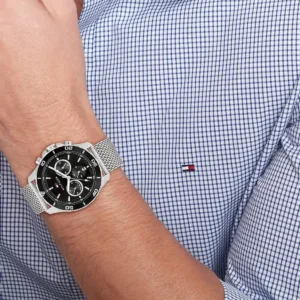 Affirmez votre allure avec la montre Tommy Hilfiger 1792092, conçue pour l’homme moderne. Son cadran noir intense est accentué par des sous-cadrans multifonctions et une fenêtre date, le tout sublimé par une lunette sportive noire. Le bracelet en maille milanaise argentée apporte une touche contemporaine et sophistiquée, parfaite pour un look urbain, élégant et dynamique.