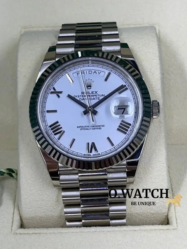 Rolex Day-Date 40MM Or Blanc Et Cadran Blanc President Ceinture