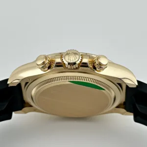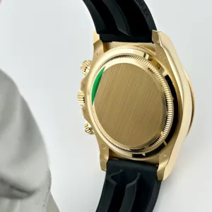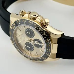 Le cadran champagne est rehaussé de compteurs noirs contrastants, offrant une esthétique à la fois audacieuse et sophistiquée. Les index et les aiguilles en or jaune, revêtus de Chromalight pour une lisibilité optimale, complètent ce design intemporel. Montée sur un bracelet Oysterflex noir à la fois sportif et élégant, cette Daytona est idéale pour ceux qui recherchent une montre polyvalente et luxueuse. Très prisée des collectionneurs, la 126518LN se distingue par son alliance de design iconique et de fonctionnalités avancées.