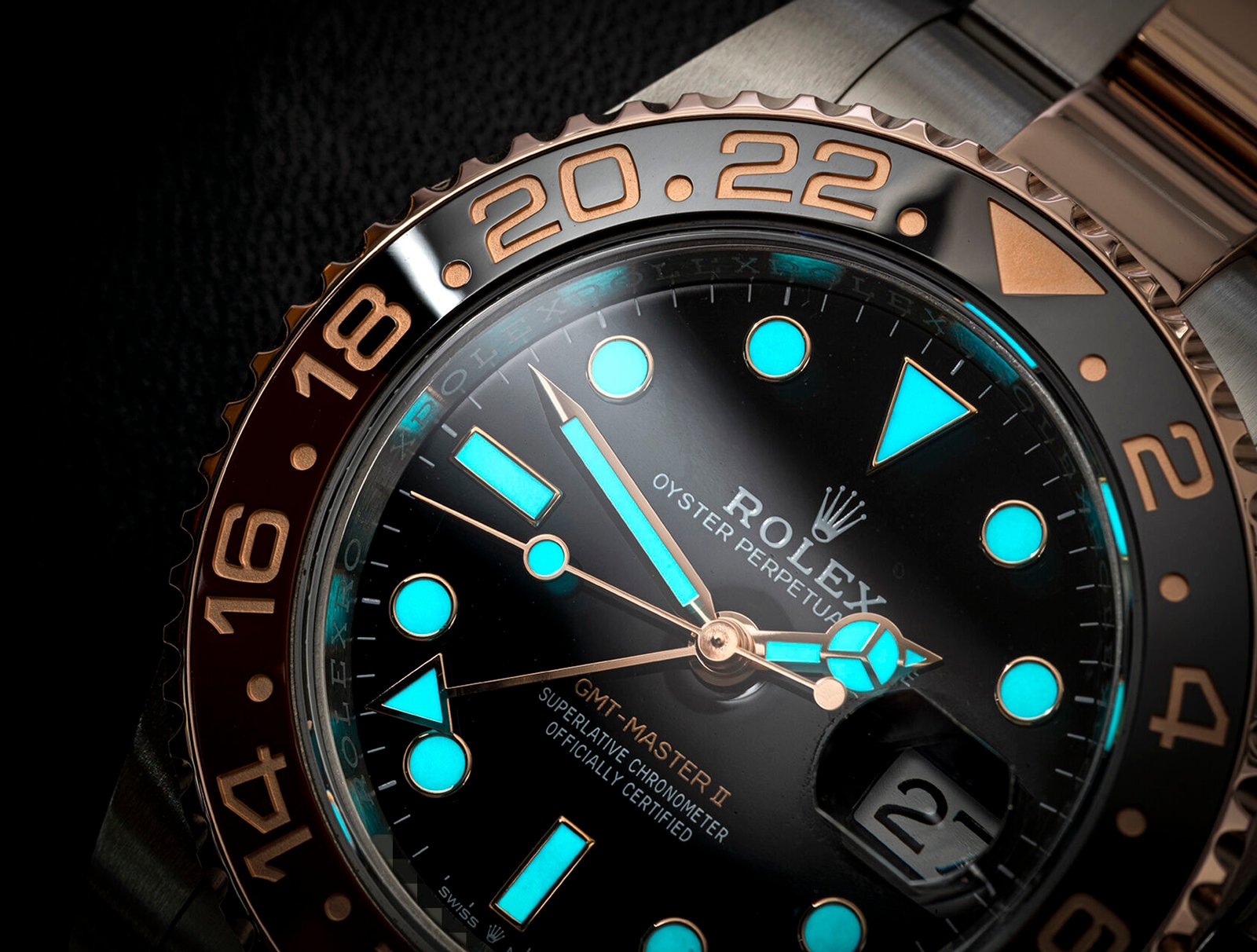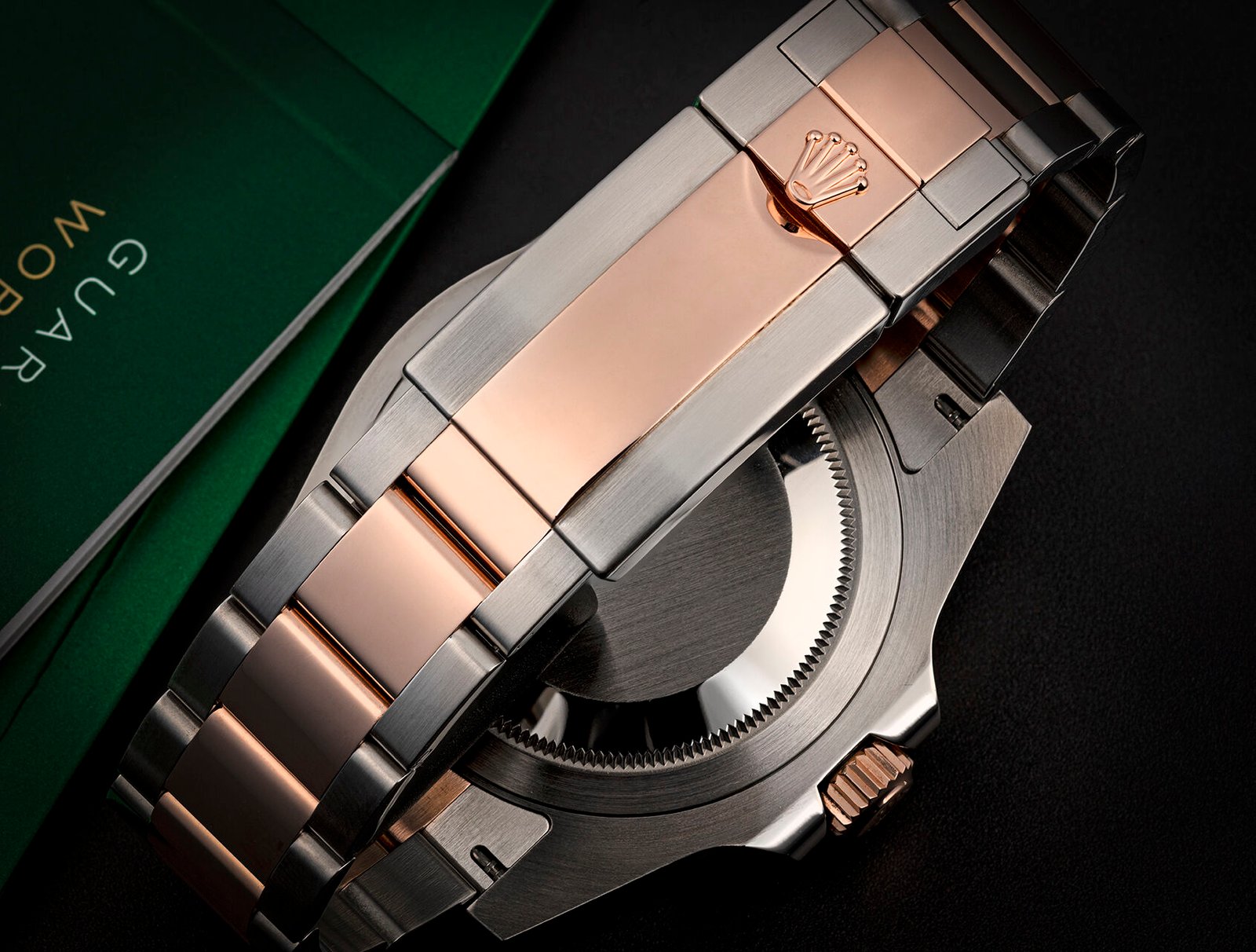 Cette Everose & Oystersteel GMT-Master II réf. 126711CHNR, dispose de la fonction double fuseau horaire extrêmement utile ; indiqué par son aiguille « GMT » à pointe de flèche et sa lunette tournante Cerachrom Chocolat et Noir, avec graduations 24 heures. Alimenté par le dernier mouvement à remontage automatique 3285 de Rolex, étanche jusqu’à 100 m et monté sur son bracelet sportif Oyster en or rose 18 carats et acier avec réglage Easylink été/hiver.