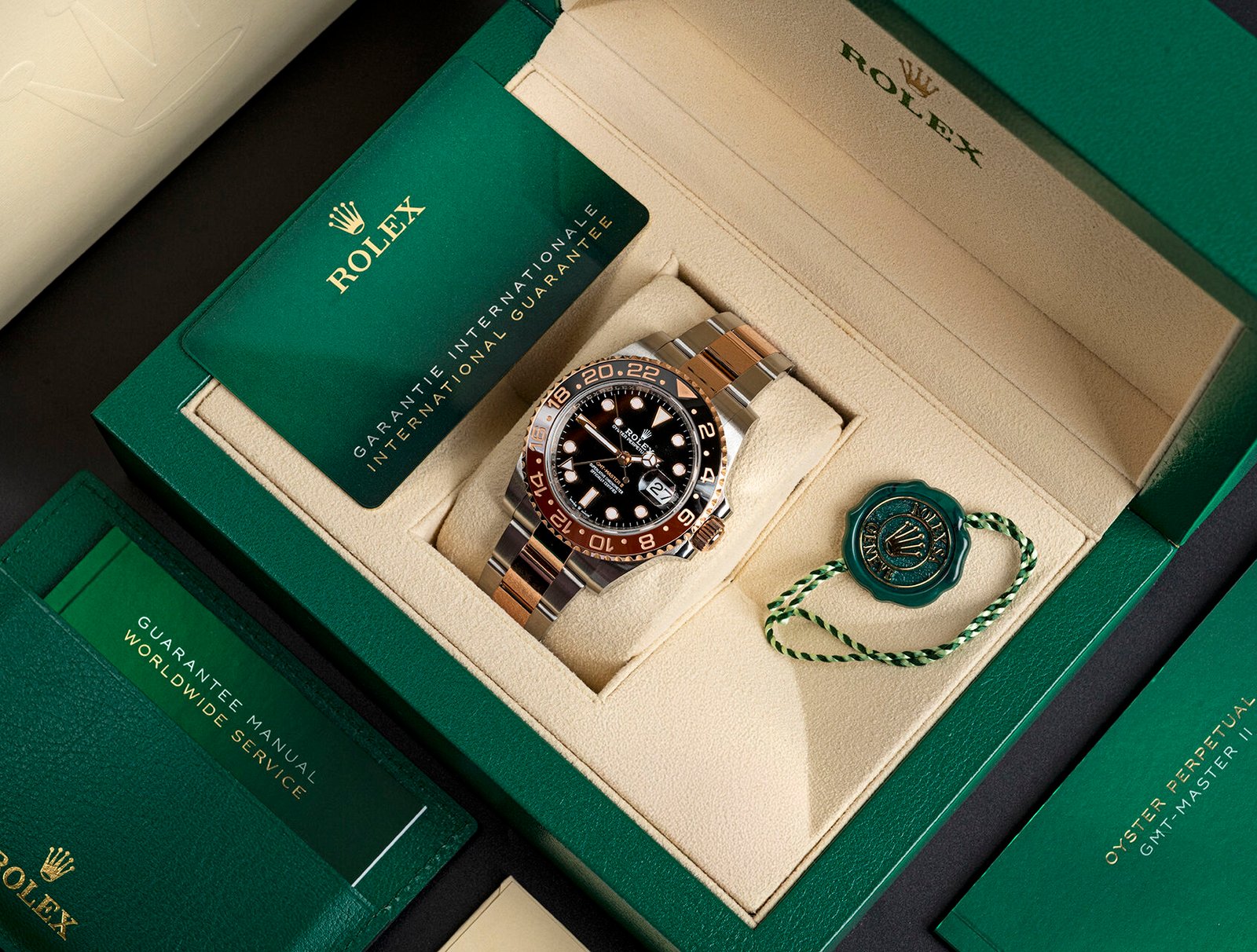 La demande augmente vraiment pour les modèles professionnels de Rolex, avec des exemples parfaits comme cette Root Beer GMT-II, qui se vendent plus rapidement que jamais. Vendu au détail au Royaume-Uni en janvier 2021, complet avec sa boîte Rolex, son étiquette verte, ses livrets d’instructions GMT et sa carte de garantie internationale Rolex.