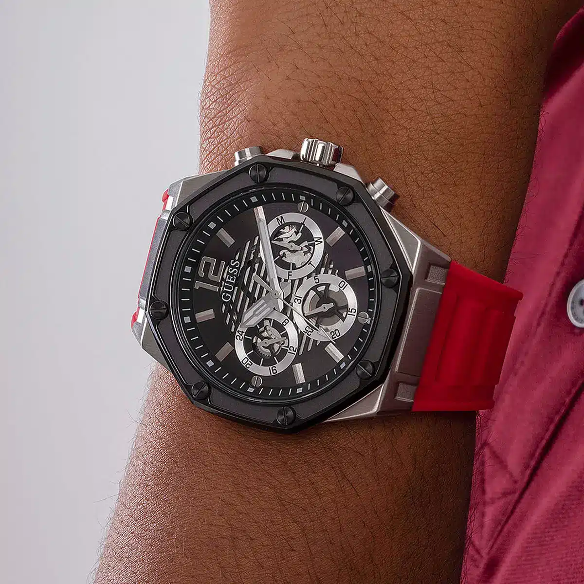 Cette pièce horlogère incarne l’esprit audacieux de Guess, offrant une interprétation moderne et dynamique de l’horlogerie sportive.