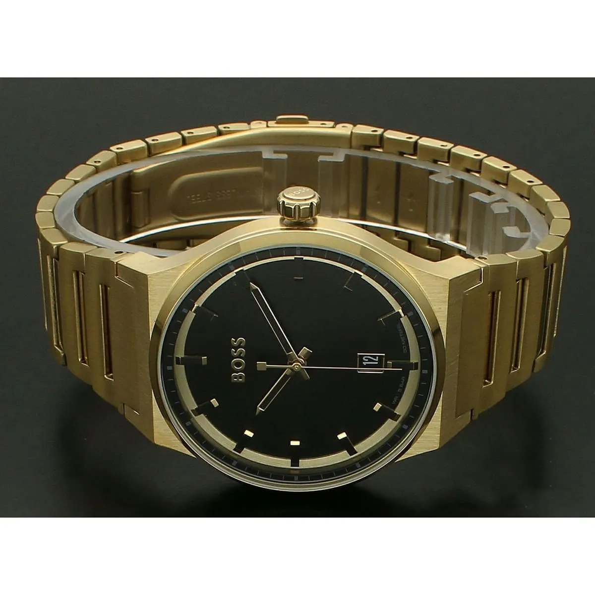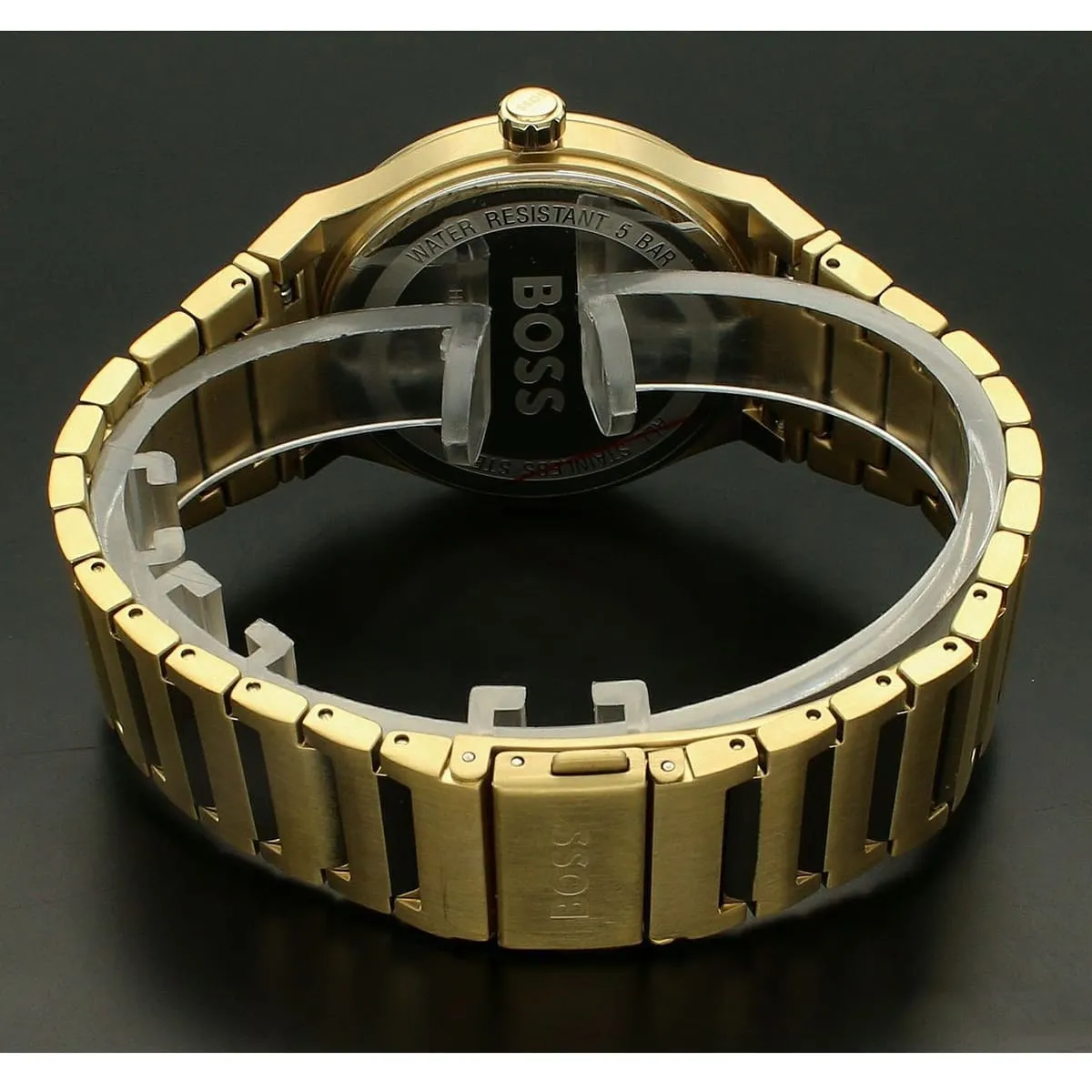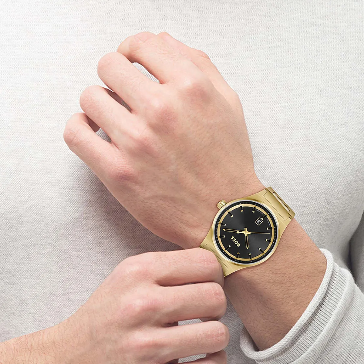 La Candor 1514077 de Hugo Boss incarne le minimalisme de luxe dans une version dorée saisissante. Son boîtier en acier inoxydable doré abrite un cadran noir profond aux finitions épurées, offrant une lisibilité parfaite et un style affirmé. Le bracelet en métal ton or, parfaitement intégré au boîtier, renforce son allure sophistiquée et contemporaine. Résistante à 50 mètres, elle allie élégance urbaine et fonctionnalité quotidienne pour l’homme qui aime se distinguer avec subtilité.