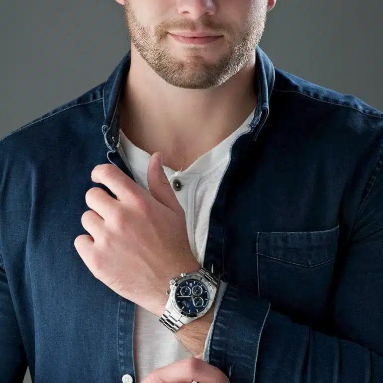 La Montre Homme Boss Hero Bleu 1513755, proposée par Montre Elite, séduit par son cadran bleu profond, sa lunette acier et son bracelet en métal au look moderne et raffiné. Ses sous-cadrans apportent une touche sportive chic, idéale pour sublimer vos tenues casual comme habillées. Un choix parfait pour les hommes qui recherchent une montre de marque élégante, originale et durable. Disponible chez Montre Elite avec livraison rapide partout au Maroc.
