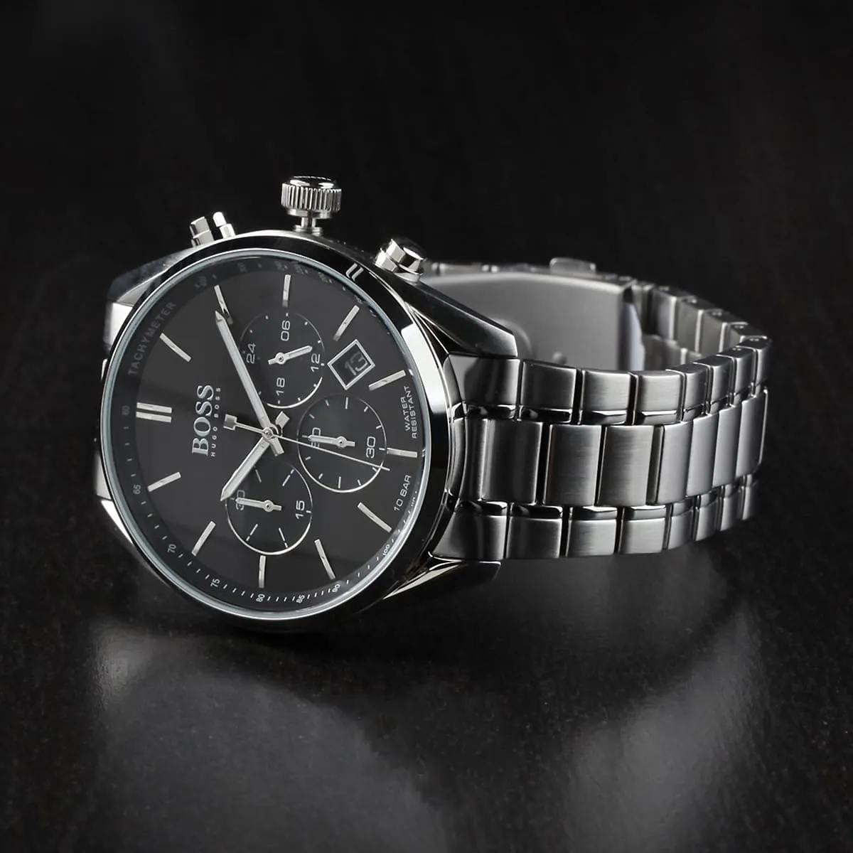 La Hugo Boss Champion séduit par son design raffiné et son cadran noir profond, sublimé par des détails argentés. Son bracelet en acier inoxydable poli lui donne une allure moderne et sophistiquée. Pensée pour l’homme qui recherche à la fois style et caractère, cette montre incarne la puissance et le raffinement BOSS. Un accessoire de prestige qui complète parfaitement toutes vos tenues.