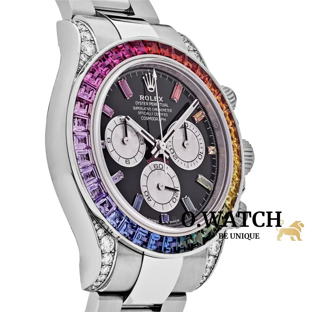 Rolex Daytona Rainbow White Gold Black Dial Sapphire